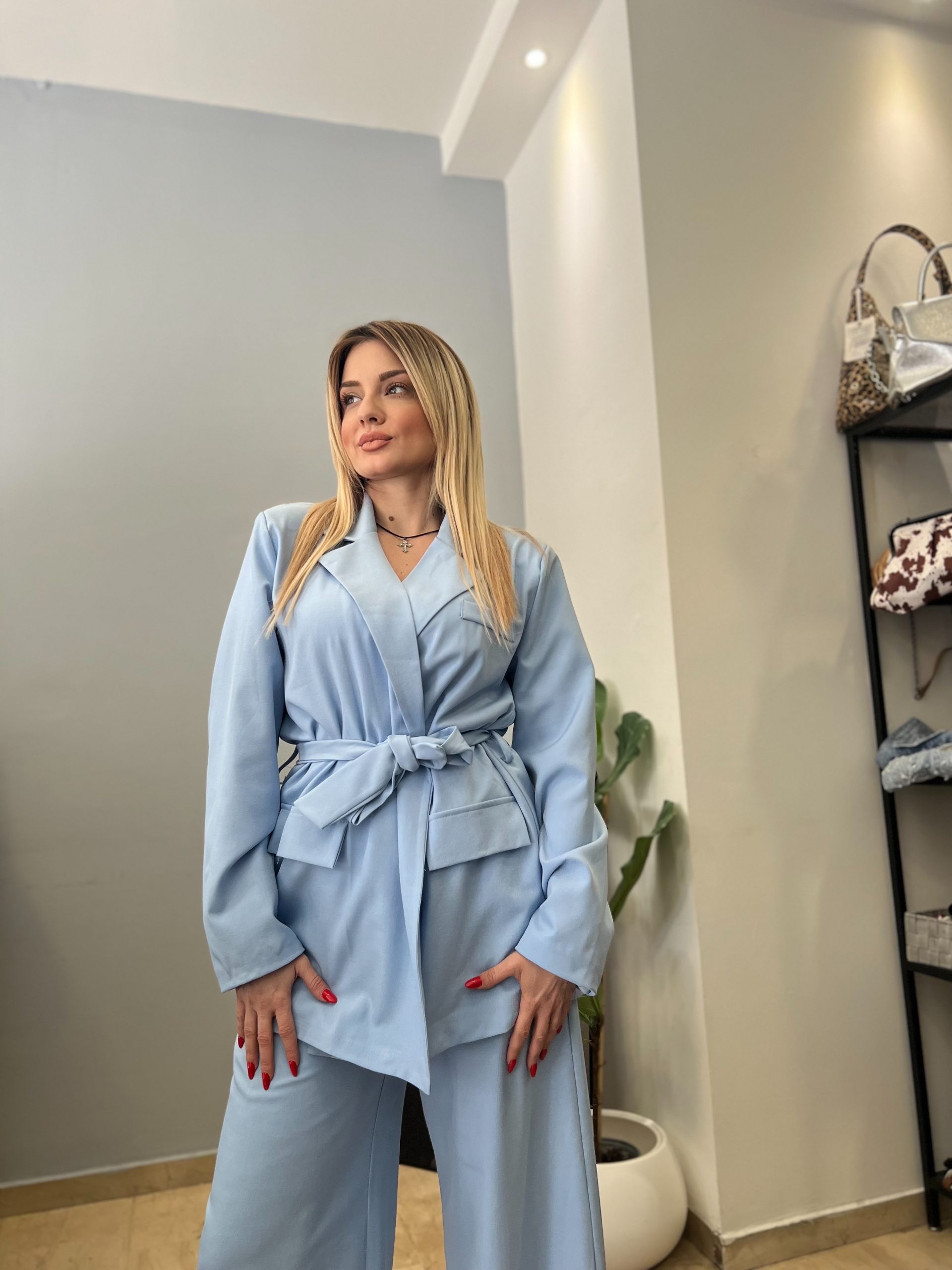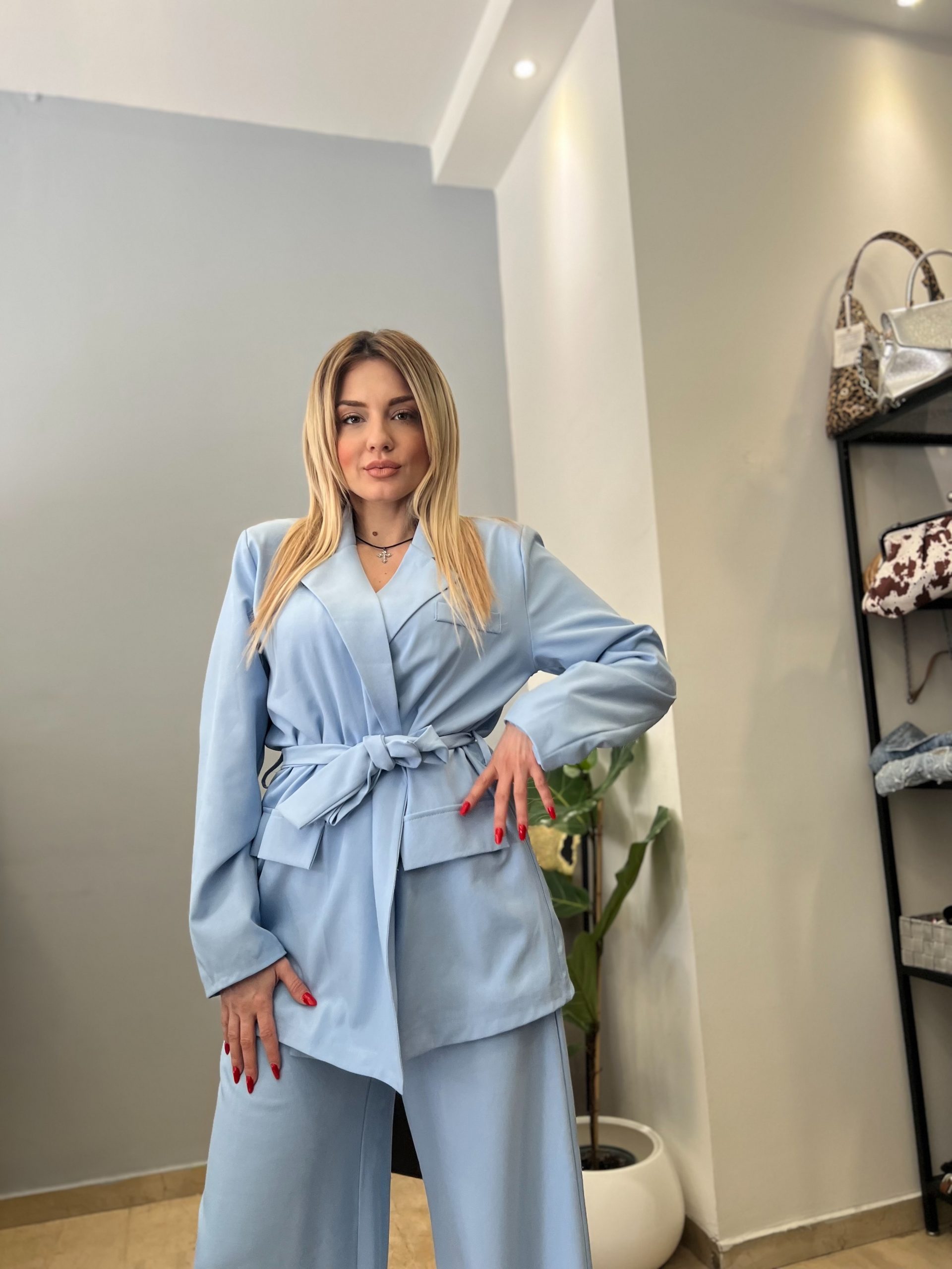 Το κουστούμι One Size με παντελόνι και σακάκι με ζώνη αποτελεί μια κομψή και πρακτική επιλογή για κάθε περίσταση. Το σακάκι διαθέτει λιτή γραμμή και συνοδεύεται από ζώνη που αγκαλιάζει τη μέση, αναδεικνύοντας τη σιλουέτα. Το παντελόνι έχει άνετη εφαρμογή και καθαρό σχεδιασμό, προσφέροντας ισορροπημένη και σύγχρονη εμφάνιση. Ένα διαχρονικό σύνολο που συνδυάζει άνεση και στυλ.