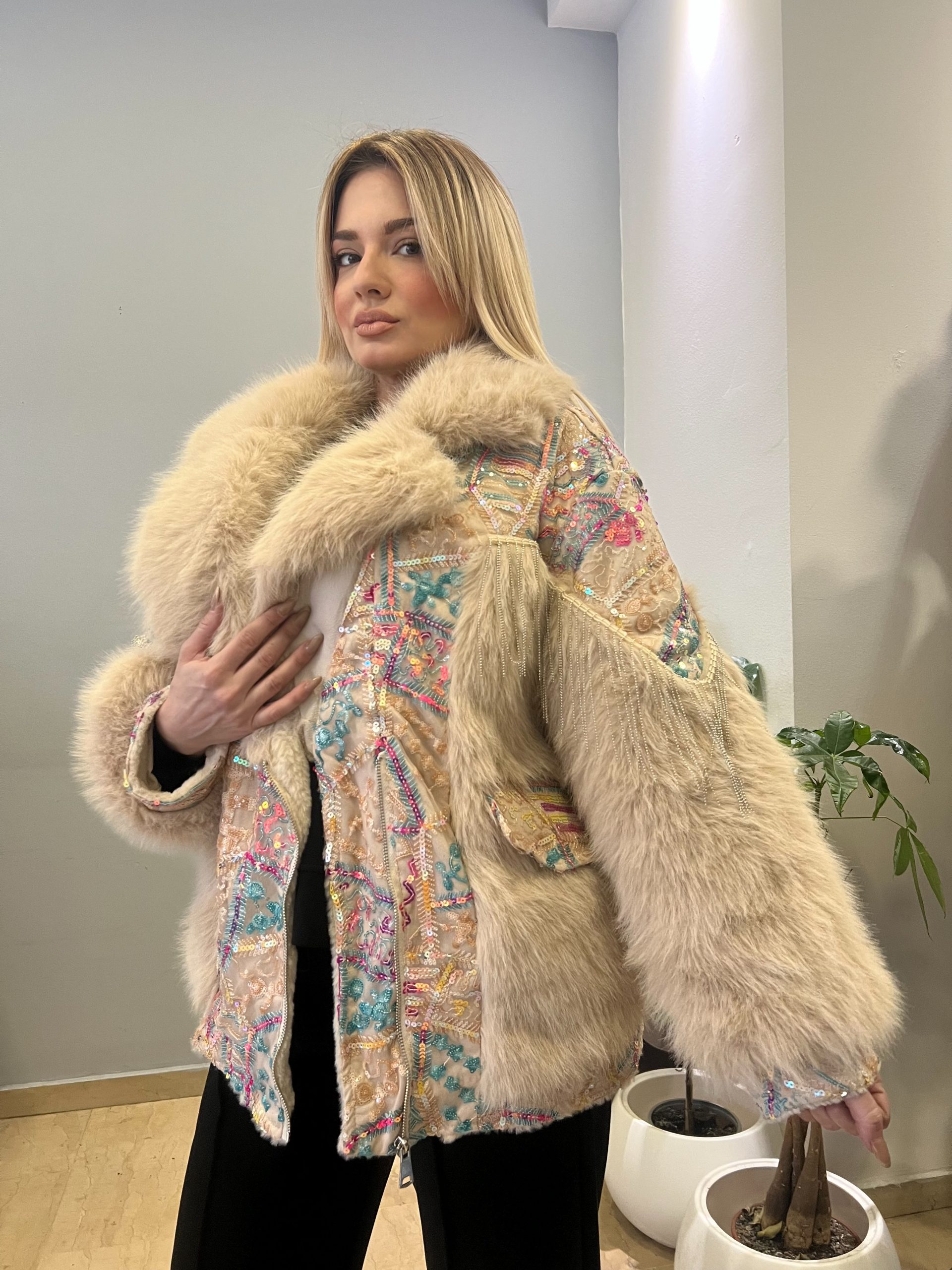 Εντυπωσιακή και μοναδική, αυτή η γούνα ξεχωρίζει από την πρώτη ματιά. Με πλούσια υφή και δυναμική παρουσία, αγκαλιάζει το σώμα χαρίζοντας άνεση, ζεστασιά και στυλ σε κάθε εμφάνιση. Ο σχεδιασμός one size προσφέρει άψογη εφαρμογή σε διαφορετικούς σωματότυπους, ενώ το statement look της την καθιστά ιδανική για όσες θέλουν να τραβούν τα βλέμματα.
