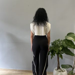 Άνετο και στυλάτο μαύρο παντελόνι με λευκή ρίγα στα πλάγια. Ιδανικό για καθημερινές εμφανίσεις, συνδυάζει το casual με το sporty look. Το ελαστικό του ύφασμα προσφέρει άνεση και εφαρμογή που κολακεύει, ενώ το one size μέγεθος καλύπτει έως και large.