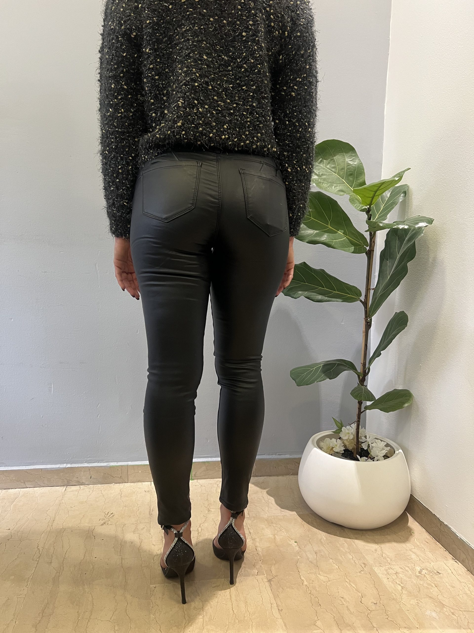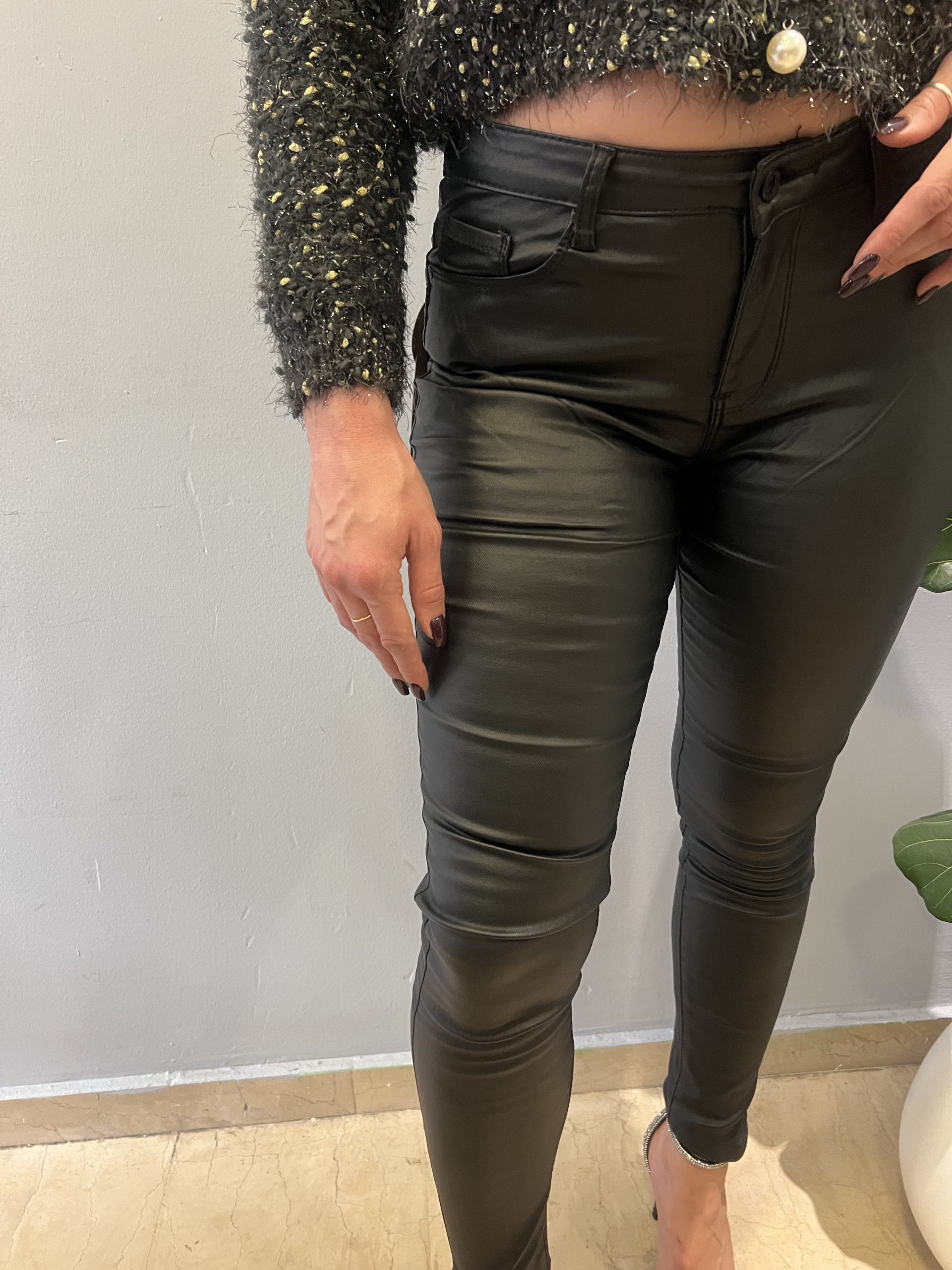 Μαύρο δερμάτινο push-up παντελόνι με άνετη εφαρμογή, σχεδιασμένο να αγκαλιάζει τη σιλουέτα και να αναδεικνύει φυσικά τις καμπύλες. Η μαλακή, ελαστική υφή του προσφέρει εύκολη κίνηση, ενώ η minimal γραμμή του το κάνει ιδανικό για καθημερινό αλλά και πιο βραδινό στυλ. Μοντέρνο, κομψό και ευκολοφόρετο, ταιριάζει με κάθε look.