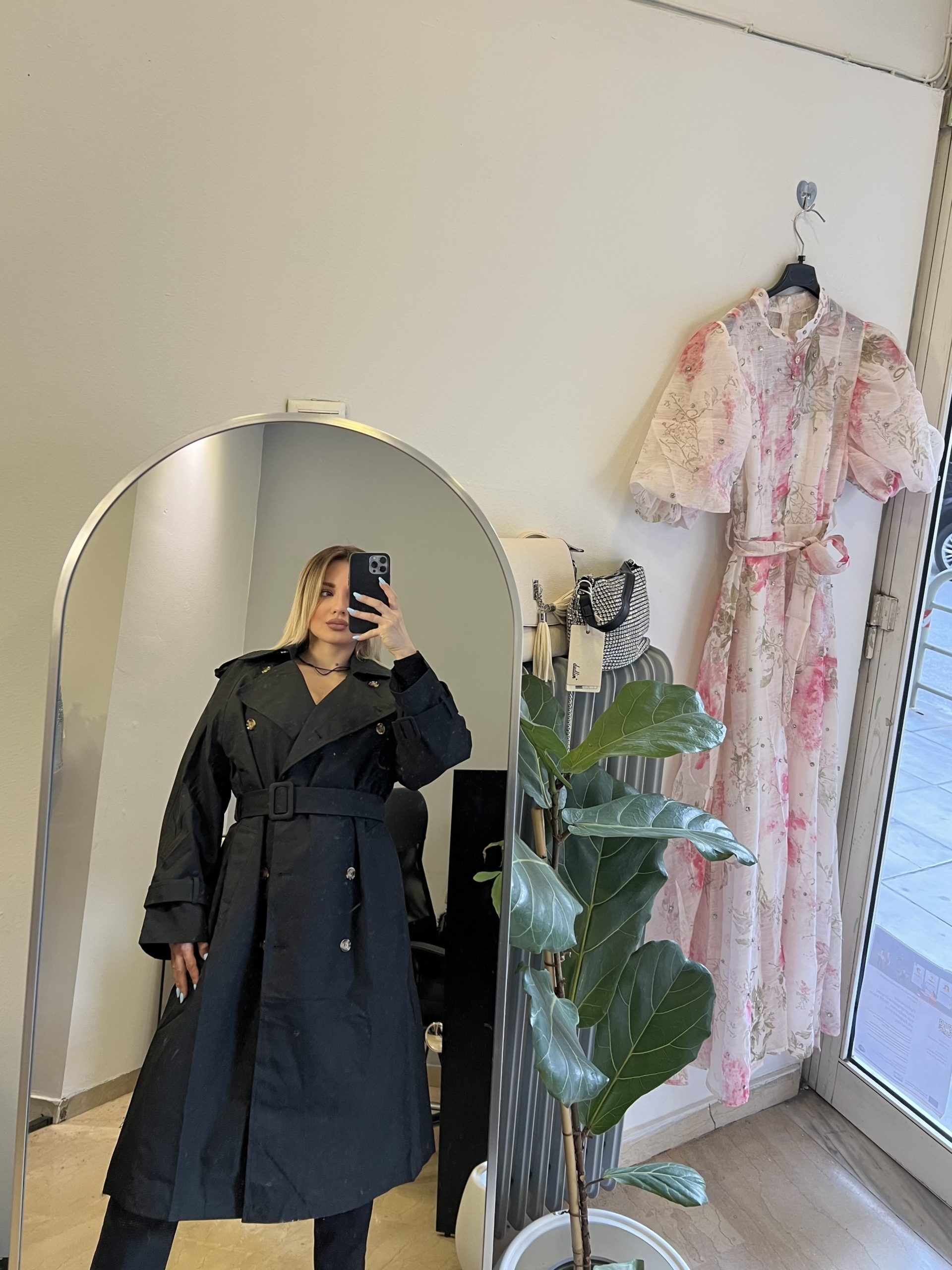 Μια μαύρη all-time classic καμπαρντίνα που δεν φεύγει ποτέ από τη μόδα. Με διαχρονική γραμμή και minimal αισθητική, αποτελεί το ιδανικό κομμάτι για να ολοκληρώσει κάθε εμφάνιση — από καθημερινά looks μέχρι πιο κομψούς συνδυασμούς.