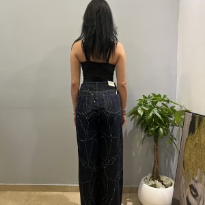 Αναδείξτε το στυλ σας με αυτό το μοναδικό τζιν παντελόνι με σχέδιο από στρας – ο απόλυτος συνδυασμός streetwear και glam! Κατασκευασμένο από ελαστικό denim για τέλεια εφαρμογή, διαθέτει εντυπωσιακά σχέδια από στρας που κοσμούν το μπροστινό μέρος και τις πίσω τσέπες