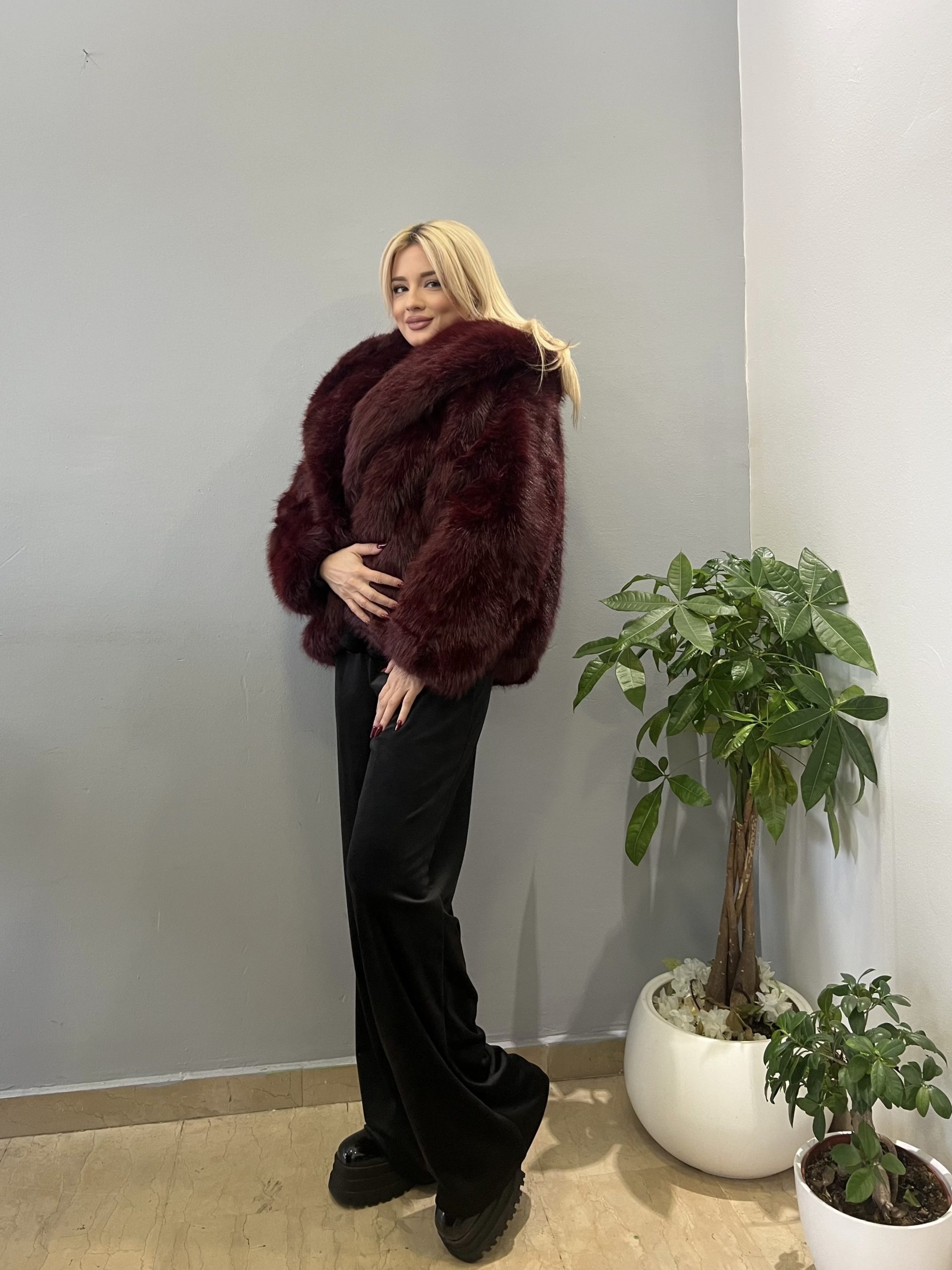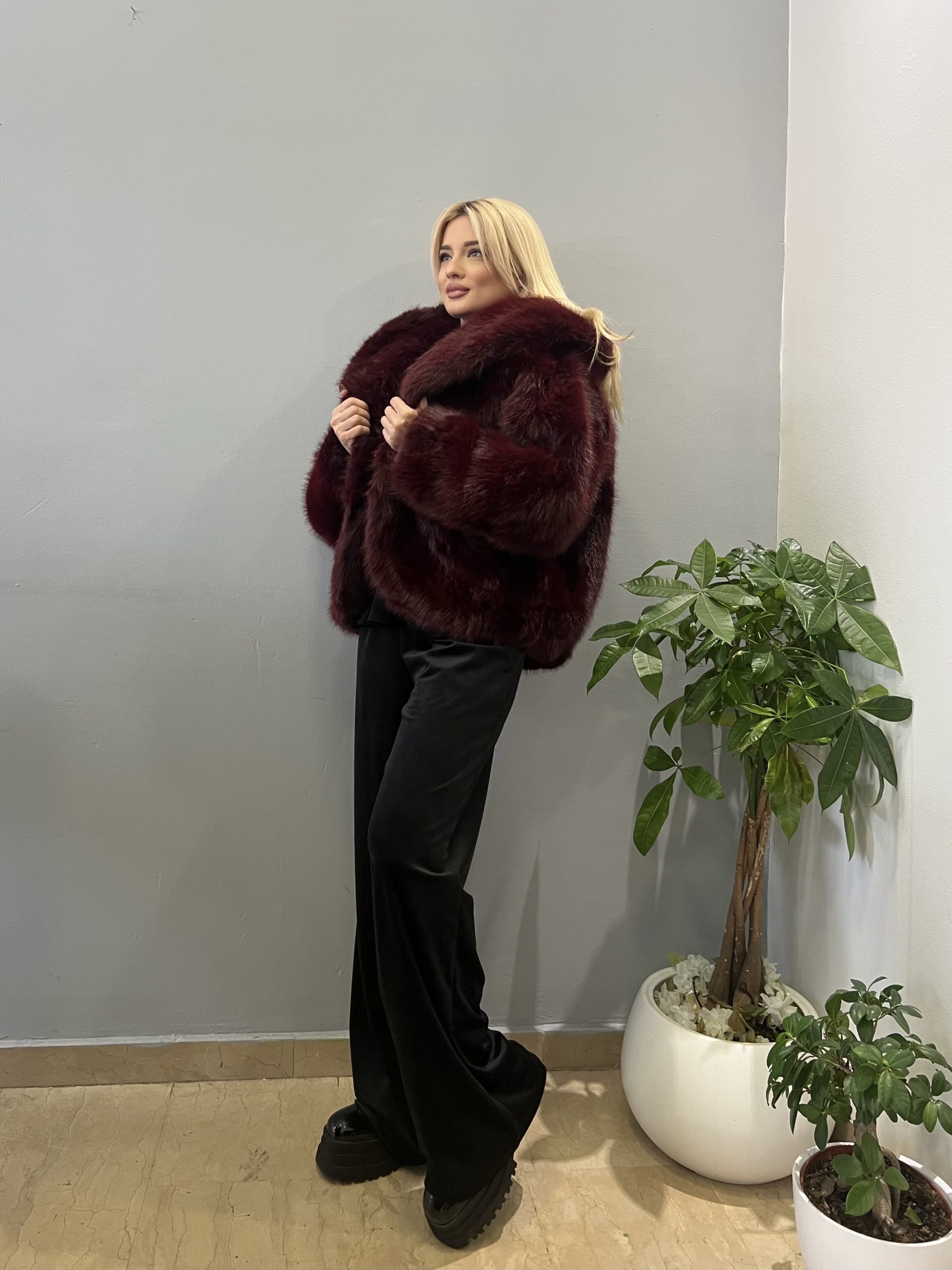 Αναβάθμισε το στυλ σου με αυτή την υπέροχη, μπορντώ κοντή γούνα που συνδυάζει κομψότητα και άνεση! Η φουντωτή υφή της χαρίζει πολυτελή εμφάνιση, ενώ η κλασική γραμμή της την καθιστά ιδανική για κάθε περίσταση — από μια βραδινή έξοδο έως ένα στιλάτο καθημερινό look.