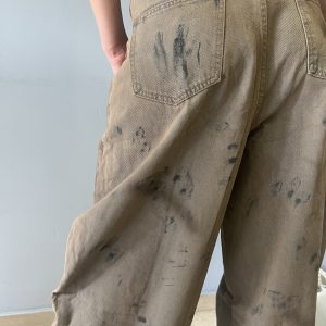 Τζιν παντελόνι σε μπεζ απόχρωση με φαρδιά γραμμή. Διαθέτει άνετη εφαρμογή και casual στυλ. Προτείνουμε να επιλέξετε ένα νούμερο μικρότερο από το συνηθισμένο σας, καθώς το σχέδιο είναι φαρδύ.