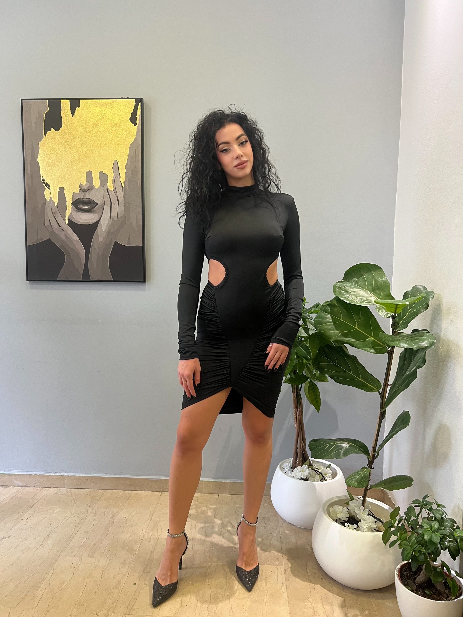 Μαύρο φόρεμα, one size, με cups στο στήθος και ανοιχτή πλάτη.Είναι αρκετά ελαστικό και καλύπτει μέχρι μέγεθος medium.