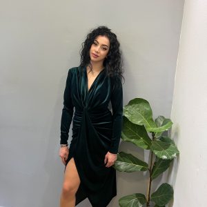 Ένα εντυπωσιακό σμαραγδί βελούδινο φόρεμα που αναδεικνύει τη διαχρονική κομψότητα του βελούδου μέσα από ένα μοντέρνο, drape σχέδιο. Η απαλή υφή του υφάσματος αγκαλιάζει το σώμα με φυσική ροή, προσφέροντας άνεση και πολυτέλεια σε κάθε κίνηση. . Ένα φόρεμα που συνδυάζει στιλ, θηλυκότητα και σύγχρονη απλότητα, δημιουργώντας ένα look που δεν περνά απαρατήρητο.