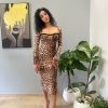 Leopard μακρύ φόρεμα με κορδονάκια στην πλάτη