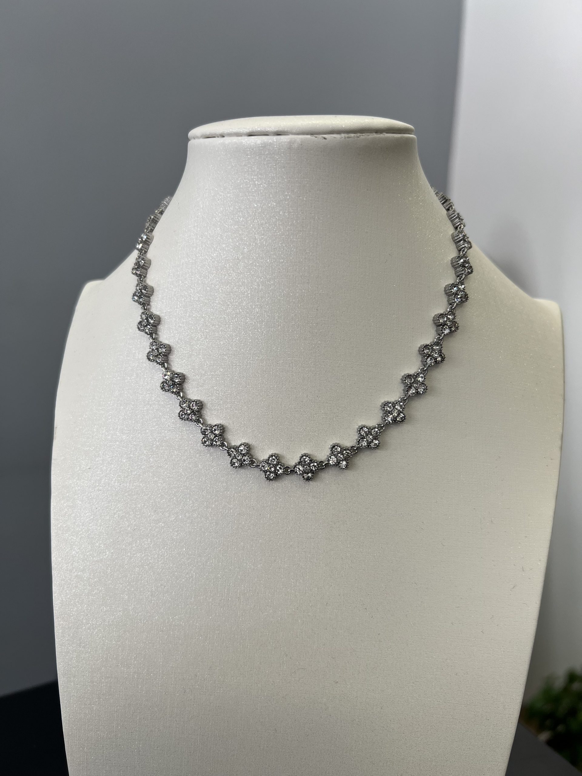 Ένα εκθαμβωτικό choker που μαγνητίζει το βλέμμα με την κομψότητά του! Είναι ατσάλι με zirgon.Διακοσμημένο με λαμπερά πετράδια zircon σε συμμετρικό σχέδιο, προσφέρει μία αίσθηση πολυτέλειας και διαχρονικής φινέτσας. Η λάμψη του απογειώνει κάθε εμφάνιση, ενώ η εφαρμογή του κοντά στον λαιμό το καθιστά ιδανικό για κομψές βραδινές εξόδους αλλά και για πιο ιδιαίτερες περιστάσεις.