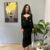 Μαύρο, ιδιαίτερο, μακρύ φόρεμα, one size, με άνοιγμα στην κοιλιά. Άνετο κομψό και ιδανικό για κάθε εμφάνιση