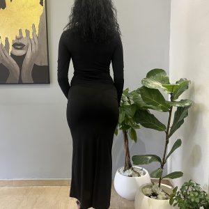 Μαύρο μακρύ φόρεμα one size, με κομψό άνοιγμα στην κοιλιά και διακριτικές χρυσές λεπτομέρειες που αναδεικνύουν το στυλ. Ιδανικό για βραδινές εμφανίσεις με minimal αλλά εντυπωσιακό χαρακτήρα.